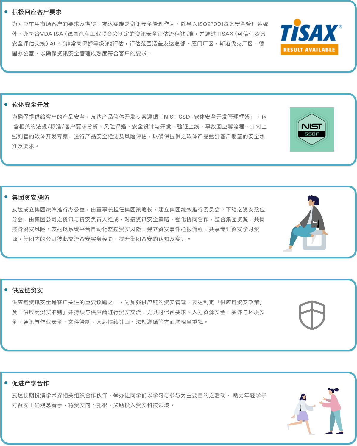 jinnian金年会以「维护资安,从我做起」为对同仁的期许,实施全面资安宣导、通识与专业课程教育训练。包含: