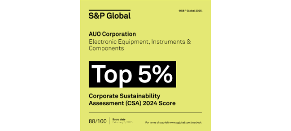 AUO Ranked Top 5% in S&P Global Sustainability Yearbook 2025